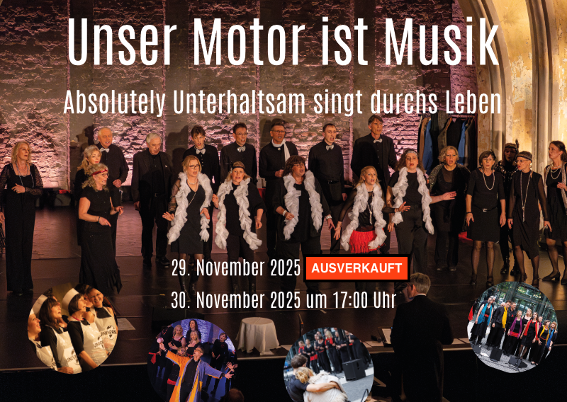Vom ABSOLUTELY Anfang bis zu very UNTERHALTSAMAbsolutely Unterhaltsam nahm in einem ausvekauften Haus das Publikum auf eine musikalische Zeitreise mit! Von Schlagerperlen über Pop-Klassiker bis hin zu swingenden Ohrwürmern – das Programm war so bunt wie die Leggings der 80er! Egal, ob Sie auf „Safari“ gehen, oder Swing eher Ihr Rock ist – Absolutely Unterhaltsam hatte die passenden Hits im Gepäck.Der Berliner A-cappella-Chor feiert in diesem Jahr übrigens 35 Jahre pure Stimmgewalt. An diesem Konzertabend ließen sich die Anwesenden von einem fulmimnanten Gesangsspektakel begeistern.Denn eins ist sicher: Mit Absolutely Unterhaltsam wird jeder Abend zum Hit!24. November 2024 um 17 UhrGustav-Adolf-Straße 2